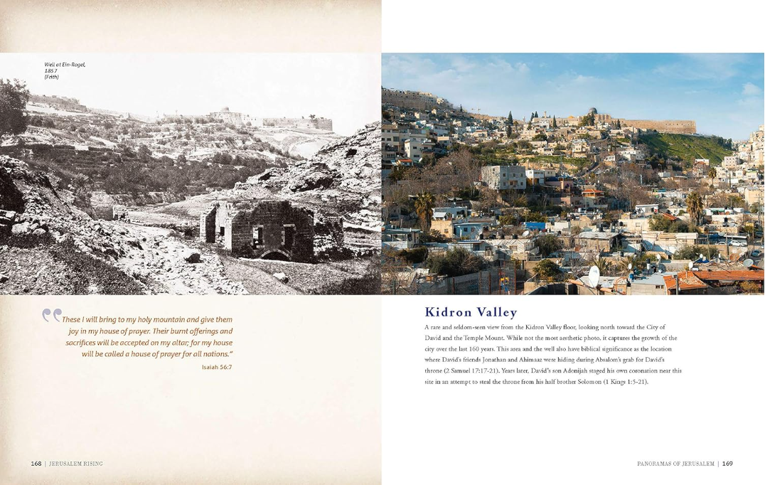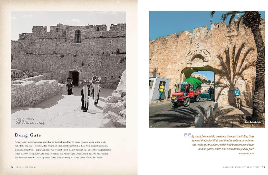This stunning new photo-comparison book and follow-up to Israel Rising documents the long-awaited and ongoing restoration of a city “set in the center of the nations” (Ezekiel 5:5). From its famed walls and gates to the beloved Old City and the new city rising up around it, view some of the oldest photos of Jerusalem ever taken (starting in the 1840s) and see them re-created from the same perspective today―some for the first time ever.